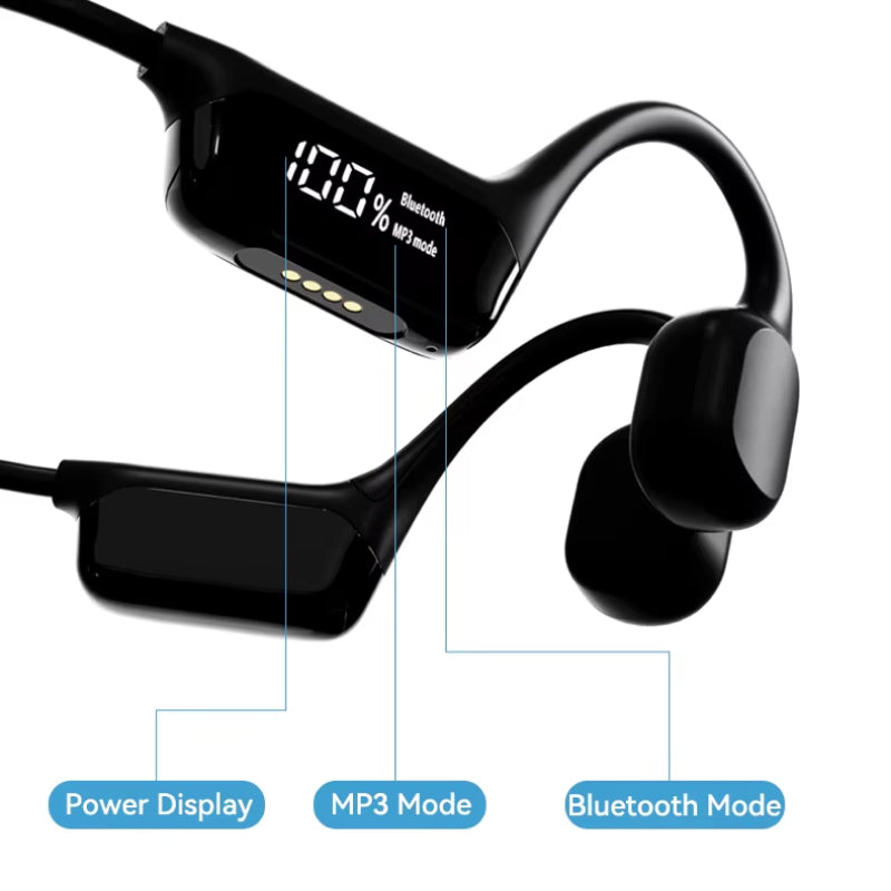 SkulSyc Open Ear Earbuds are built for versatility, offering dual-mode operation with Bluetooth and MP3. The AI Smart LED Display keeps you informed, while the ergonomic design ensures comfort during any activity. Perfect for athletes and music lovers alike.